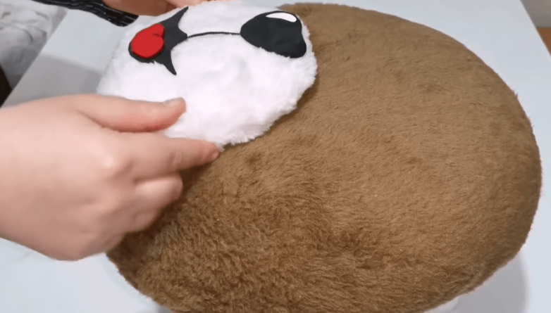 Для формирования нижней части мордочки используем кусок картона или другого плотного материала, который легко можно разрезать. Принцип работы здесь аналогичен, с той разницей, что ткань для чехла понадобиться белого цвета.