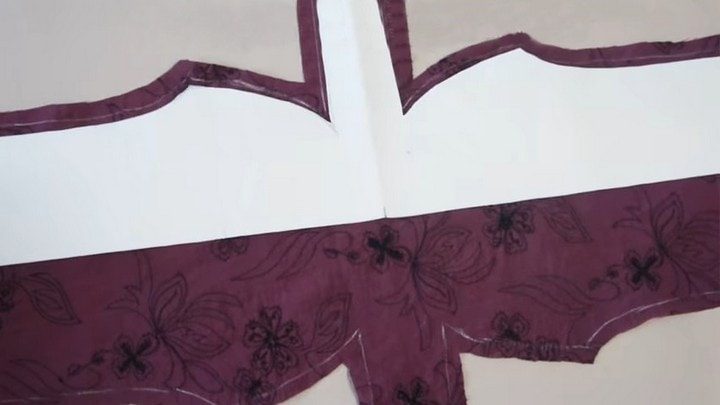 Выкройка кладётся на ткань и обводится с припусками на швы дважды: прямо и зеркально.
