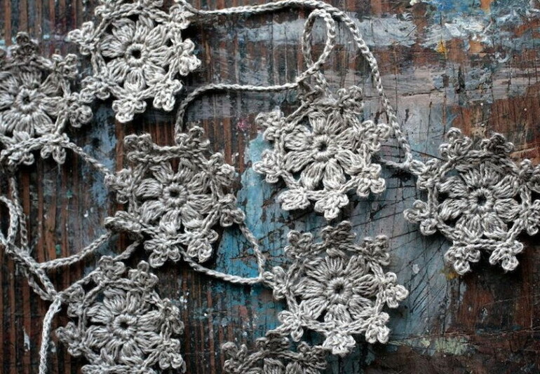 Снежинки в винтажном стиле – из серебряных ниток