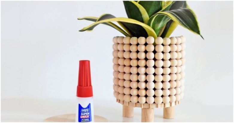 Подставка из деревянных бусин станет прекрасным украшением домашнего сада. Самое приятно это то, что используя простую технологию, можно сделать декоративные горки разных размеров. Например, для изготовления большого горшка в качестве основания можно использовать деревянную разделочную доску.