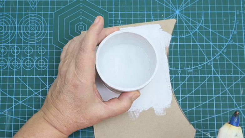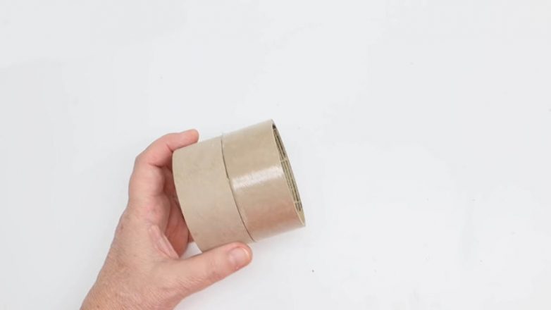 Две бобины от скотча склеиваем между собой горячим клеем. Внутри приклеиваем бумажные салфетки, пропитанные клеем ПВА.