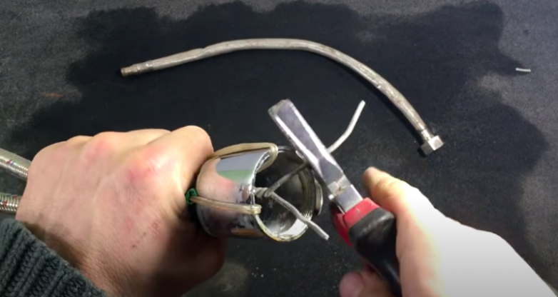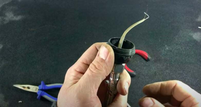 Проволоку для работы можно взять как алюминиевую, так и медную, однако последняя все же более предпочтительна, так как она более износостойкая. Далее берем провод и с помощью изоленты закрепляем его на проволоке в нескольких местах. Толщину и проволоки, и провода нужно подбирать, исходя из того, что сложенные вместе они должны не превышать диаметр вашей гибкой подводки.