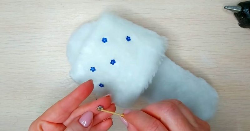 Наклейте стразы по своему желанию, чтобы приукрасить самодельные домашние тапочки.