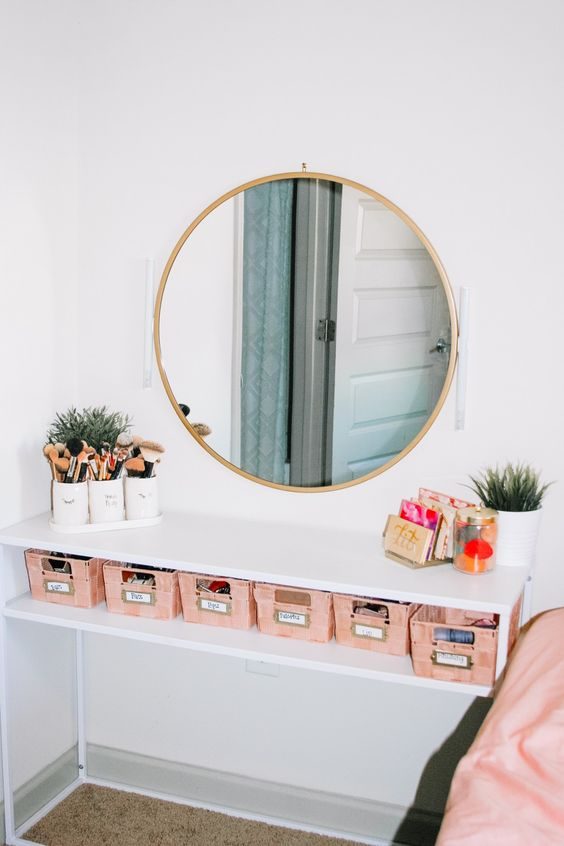 Для того, чтобы организовать уголок для макияжа в комнате не нужно много места. Уделив особое внимание деталям, вы получите чудесное место, которое подарит вам положительные эмоции с самого утра.