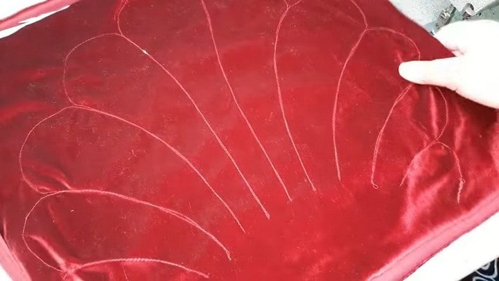 Теперь сложите изнанка к изнанке два куска ткани и вновь прострочите по уже проложенным линиям.