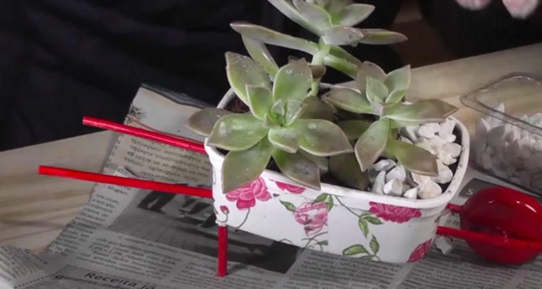 Симпатичная идея для цветов из ненужных контейнеров