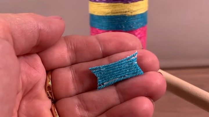 Осталось обмотать нитками сами перекладины, вскрыть табурет акриловым лаком на водной основе и насладиться результатом!