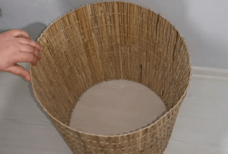 В планах — сделать роскошный дизайнерский столик. Отрезав нужное количество сетки, скрепляем ее так, чтобы получить толстую трубу. Концы обкусываем плоскогубцами или загибаем, а получившийся каркас окрашиваем. Бамбук нарезаем на куски, длина которых немного превышает высоту каркаса.