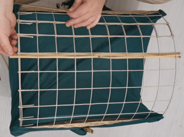 Дальше все предельно просто: нужно всего лишь пропустить каждую рейку через прутья каркаса, соблюдая шахматный порядок.