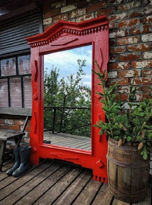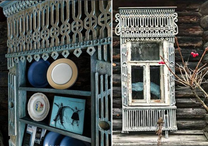 Виталий Жуйков из Москвы придумал замечательную идею: он находит в отдаленных деревнях старые, ненужные наличники, привозит в столицу и дает им вторую жизнь, превращая в стильные предметы интерьера. Например, в рамы для зеркал.