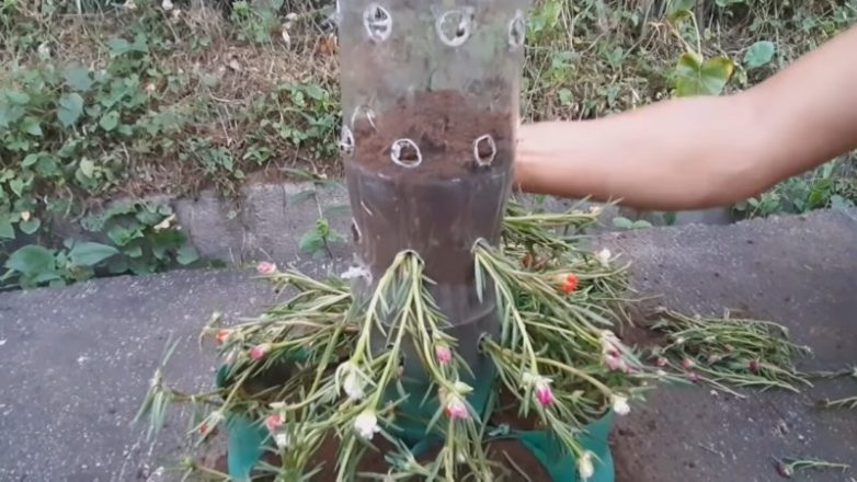 Через некоторое время растения зацветут, и у вас будет потрясающая цветочная башня-клумба!