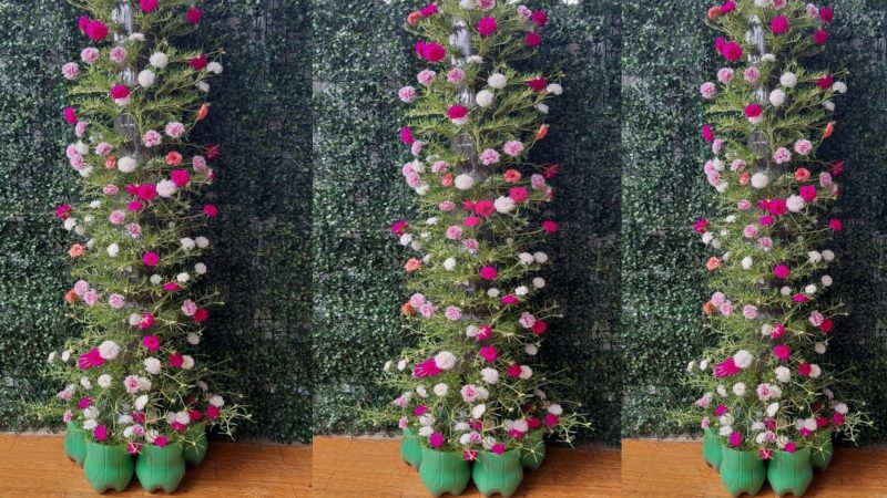 Впечатляющую вертикальную башню-клумбу легко сделать своими руками, причём понадобятся вам для этого обыкновенные пластиковые бутылки! Оцените эту простую в повторении, но потрясающе красивую идею для сада!