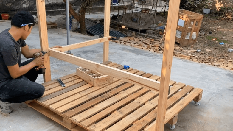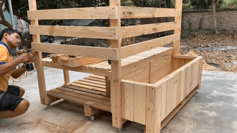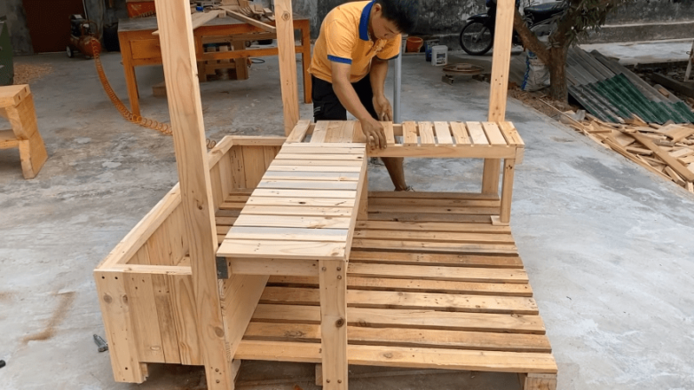 Если в ходе строительства у вас осталось излишки доски и паллеты, считайте, что вам крупно повезло. Ведь даже при наличии минимума инструмента и отсутствии навыков можно реализовать крутую идею и организовать у себя во дворе передвижную зону отдыха.