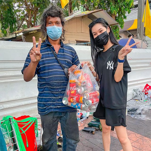 Житель Таиланда собирает выброшенные на мусорку пустые жестяные банки из-под газированных напитков и делает из них сумочки.
