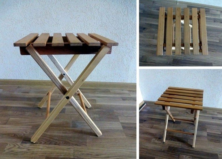 Сделав такое складывающееся сиденье самостоятельно, можно экономить место: как в доме, так и в машине при транспортировке. А брать его с собой на природу или рыбалку очень удобно практично.