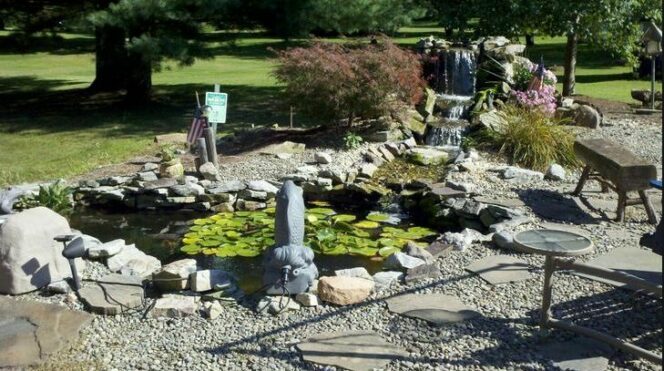 Много тени от деревьев и небольшой водопад в собственном саду, что может быть лучше?