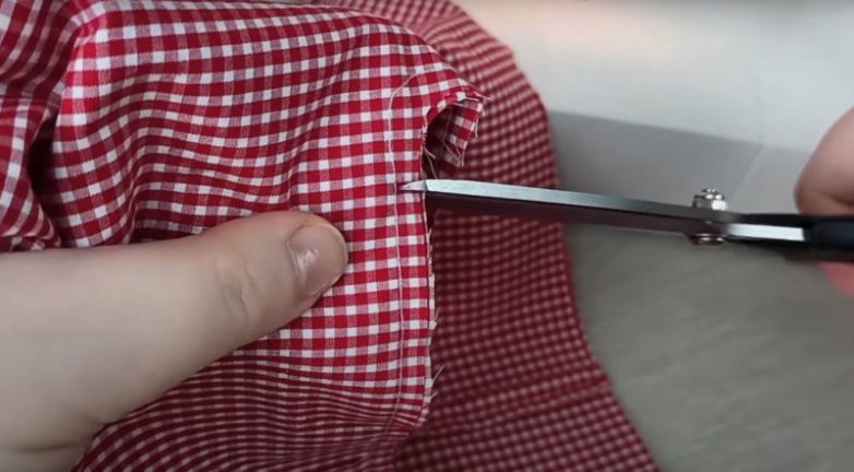 Сделайте на скруглениях небольшие насечки, это поможет аккуратно вывернуть сумку.