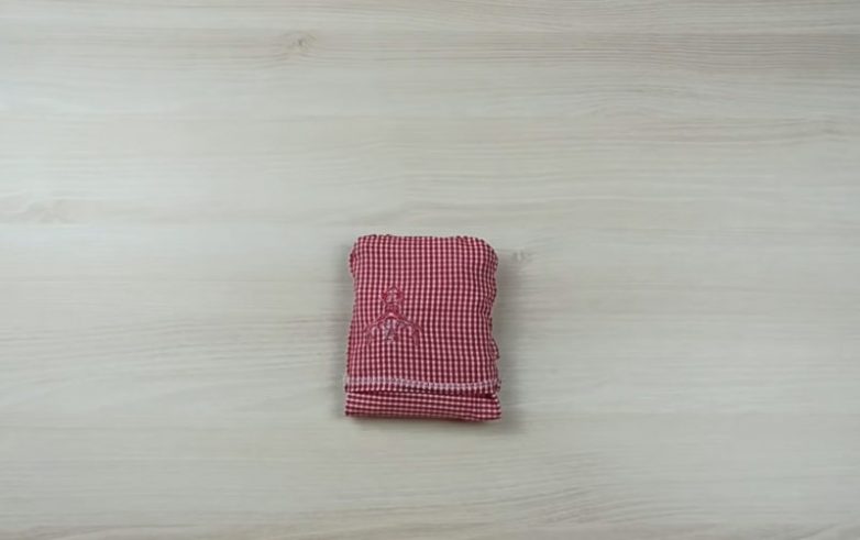 Выверните изделие на лицевую сторону. Для того чтобы сформировать ручки, заверните края сумки на несколько см, сложите сумку пополам, закрепите ручки и прошейте их.