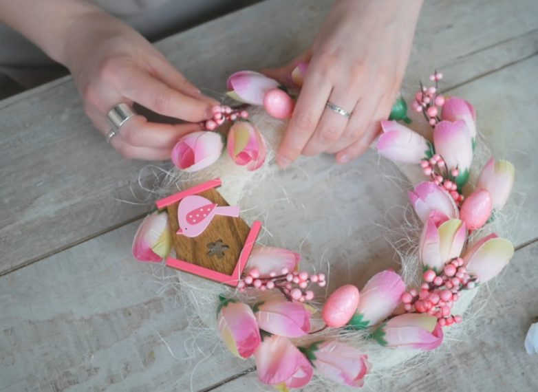 Поэтапный процесс создания нежного пасхального венка можно посмотреть на видео: