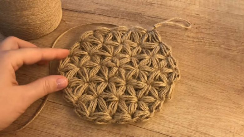 Эта удивительно красивая вещь дополнит ваш интерьер самым необыкновенным и естественным образом. Чудесная салфетка под горячее, связанная крючком из джутового шпагата, — очень стильная вещица для дома!