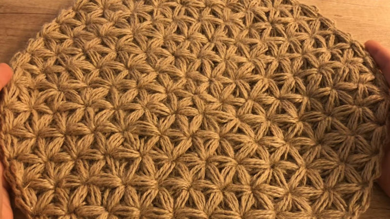 Вязание состоит из пышных столбиков, которые вяжутся ряд за рядом (круг за кругом). Начинаем вязать первый ряд или круг. Делаем две воздушные петли, затем растягиваем нитку на 1 см, делаем накид, вводим крючок обратно в первую воздушную петлю. Делаем пышный столбик из 4 петель с накидом. Затем захватываем нить, проводим через все петли сразу, объединяем пышные столбики.
