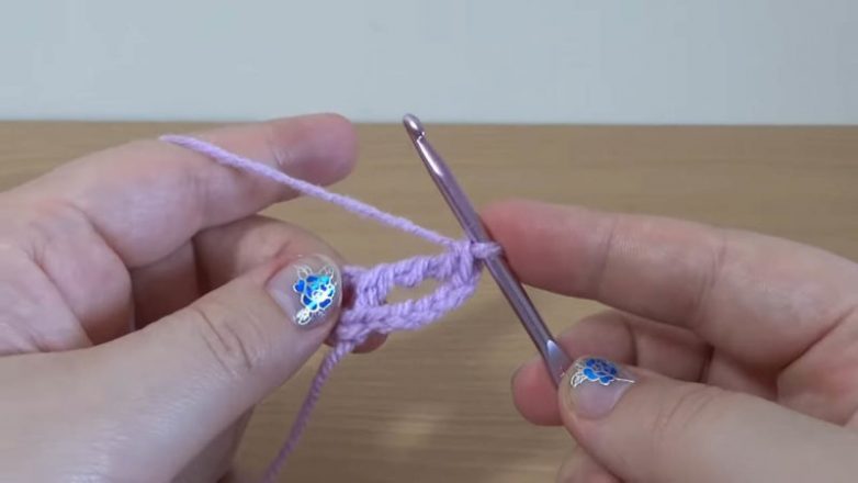 Теперь вяжем сам мотив. Набираем крючком ещё 5 воздушных петель, затем на крючок делаем 3 накида.