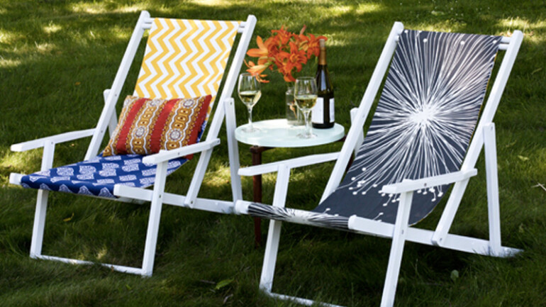 Повторяет конструкцию классического шезлонга из дерева или алюминиевой трубки. Состоит из двух скрещенных вращающихся рам и фиксатора-упора. В зависимости от угла, под которым перекрещиваются рамы, в шезлонге можно сидеть или полулежать.