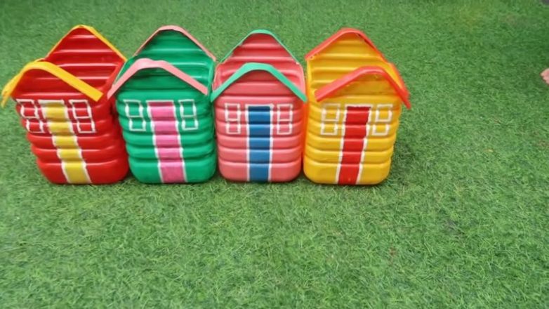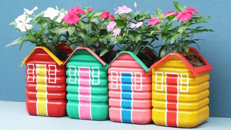 Из обыкновенных пластиковых бутылок можно сделать чудесное украшение для сада — оригинальные горшки для цветов в виде домиков. Убедитесь сами, насколько это просто, быстро и интересно!