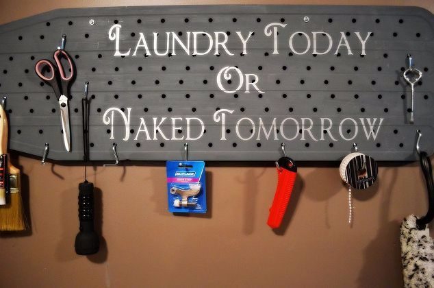 Если вам нужно место для хранения вещей для стирки, просто прикрепите металлические корзины к металлическому основанию гладильной доски и используйте их для хранения мыла, моющих средств и других принадлежностей.