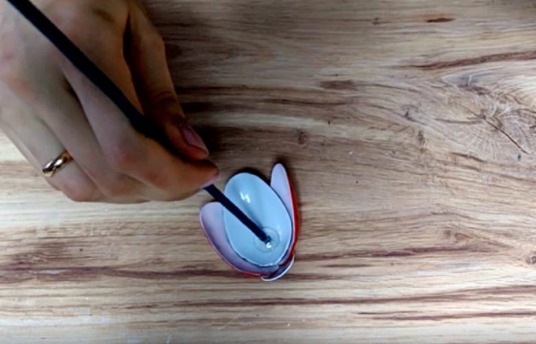 Раскрасьте ложки: одну в черный цвет, две другие в красный. Пятнышки можно сделать с помощью черного маркера. Из середины еще одной ложки вырежьте головку божьей коровки.