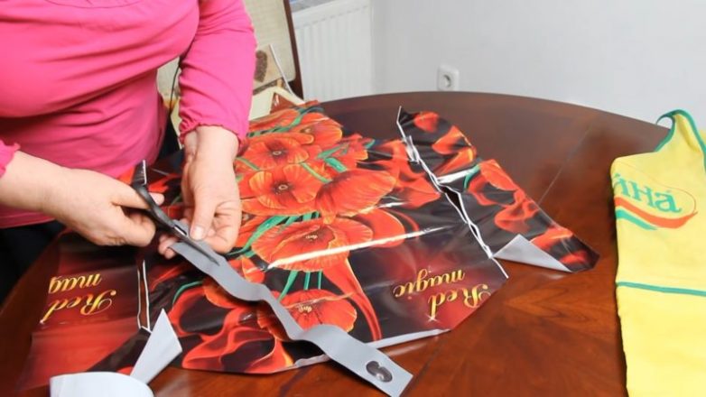 Пластиковые пакеты хранятся в каждом доме, причём в немалом количестве. Кто-то использует их как мешок для мусора, кто-то мастерит необычные поделки. Оцените интересную и необычную идею из красивого пакета — получается нужная вещь для кухни!