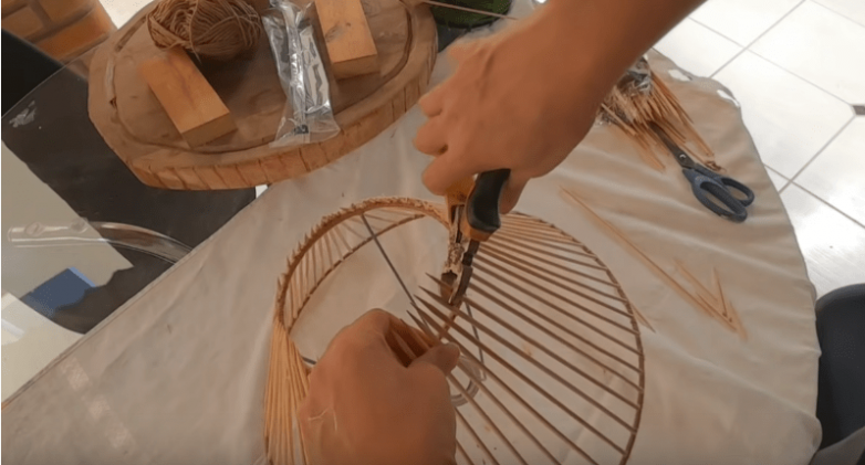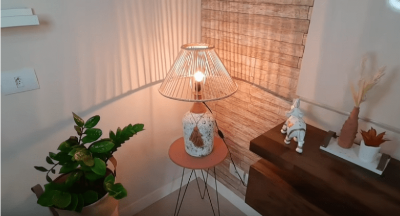 Края можно дополнительно обклеить джутовым канатом, украсив тем самым абажур, а заодно и замаскировав место крепления шпажек. Финально можно покрыть весь абажур лаком.