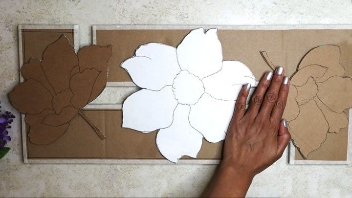 Посмотрите, как эффектно выглядит панно с объёмными цветами, а ведь в их основе — простой картонный ящик!