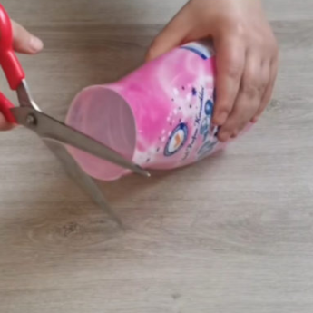 Срезаем у бутылки горлышко до нужной высоты, а затем очищаем ее от всех наклеек и этикеток.