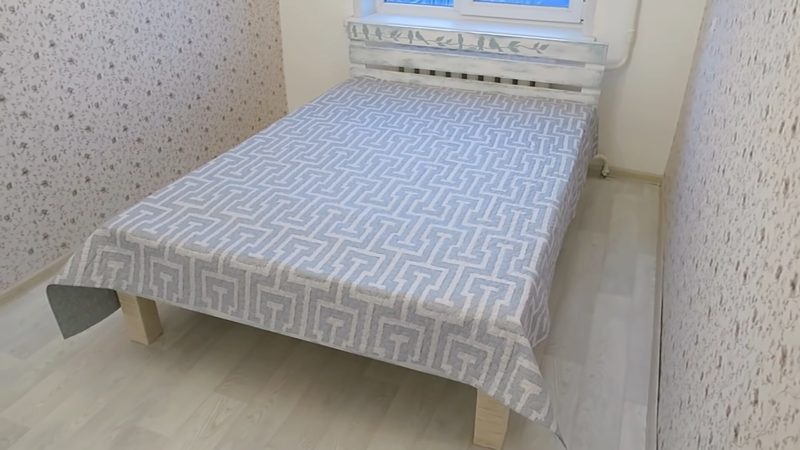 Остается лишь положить матрас на кровать и застелить её. Прекрасный результат за очень скромную сумму — всего 3300 р. на все материалы (бруски, планки, краска и т. д.).