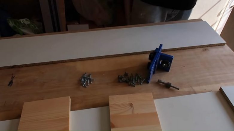 Для узкой полки под декоративной панелью понадобится ДСП и несколько деревянных деталей, которые будут разделять отсеки внутри полки. ДСП нарезать на узкие доски.