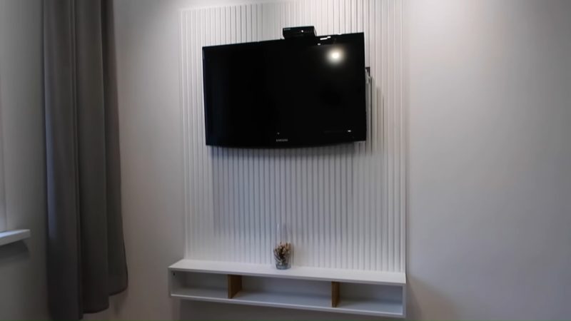 Подробнее о том, как сделать декоративную панель и полку под ТВ своими руками, смотрите в видео ниже: