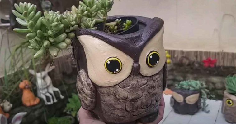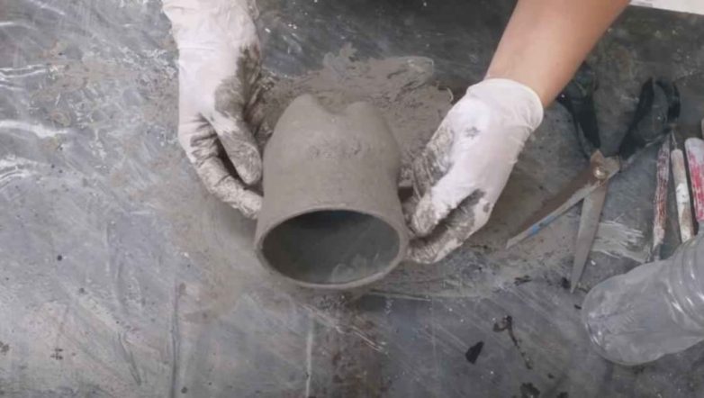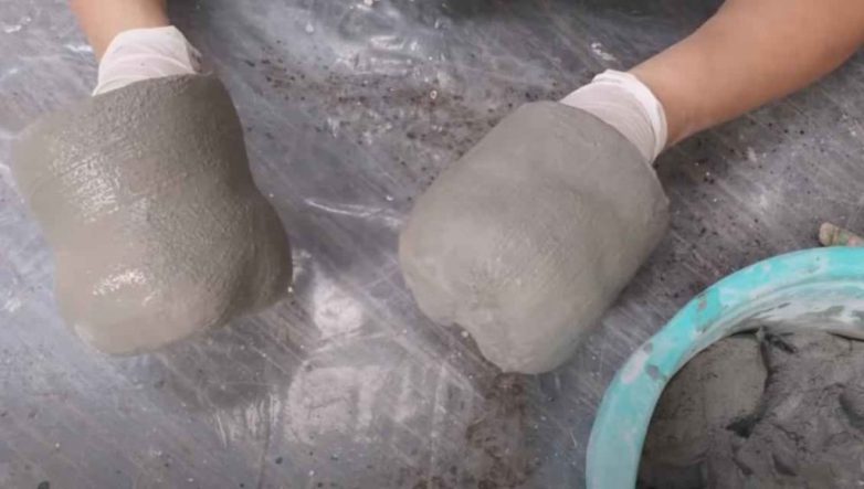Цветочный горшок из пластиковой бутылки и цементного раствора