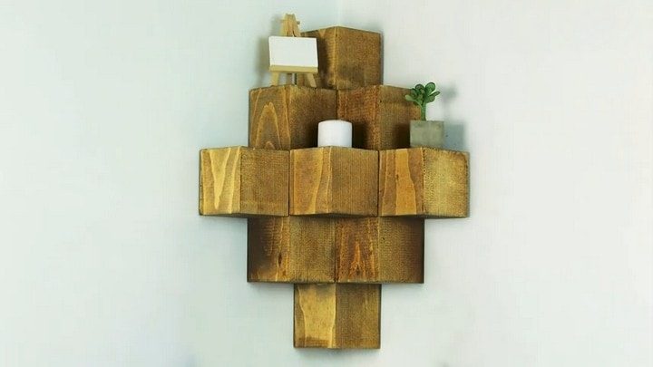 Оригинальная угловая полка готова! Осталось прикрепить на задние стенки петли и повесить.