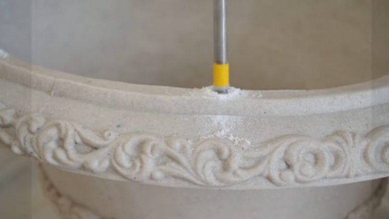 На вазоне разметить 6 точек. Сверлом сделать отверстия 10 мм.