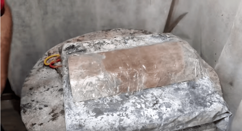 Затем смешиваем цемент и песок в соотношении 1 к 2, разводим водой. Получившийся раствор выкладываем на подготовленные ранее формы, также утапливаем в растворе подготовленную сетку для армирования заготовки.