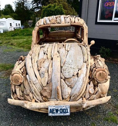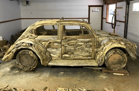 Полноразмерная копия культового автомобиля Фольксваген Жук, изготовленная вручную из коряг.