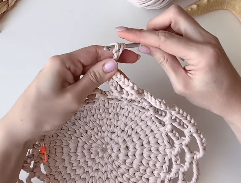 Двигаясь вкруговую, набираем нужную высоту. Ориентиром для того, что ряд окончен, станет маркер. Рабочую нить по возможности не обрываем.