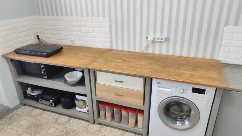 Полностью был заменен кухонный напольный гарнитур на самодельный.