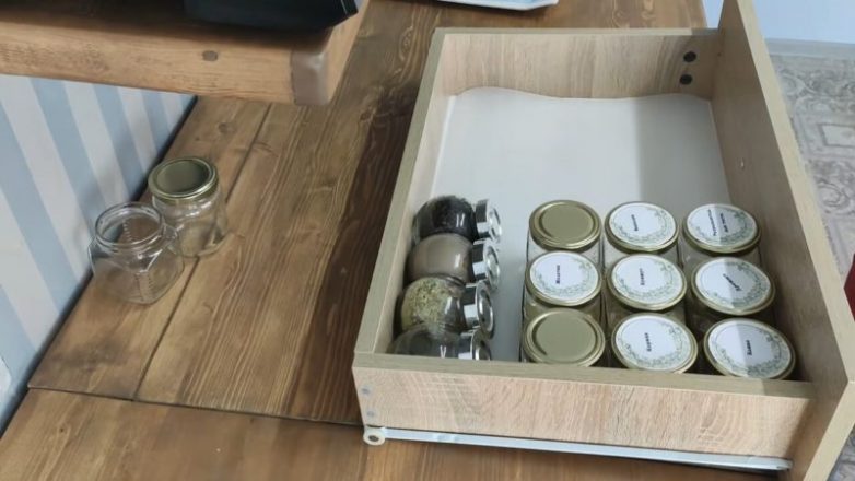 С их помощью получилось очень аккуратно расставить многочисленные столовые приборы и даже некоторую мелкую технику.