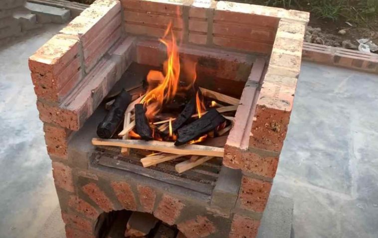 Чтобы по-быстрому приготовить мясо или рыбу, можно просто сложить на земле прямоугольный очаг из кирпича, и положить сверху решетку с продуктами. Такой мангал делается буквально за пару минут.
