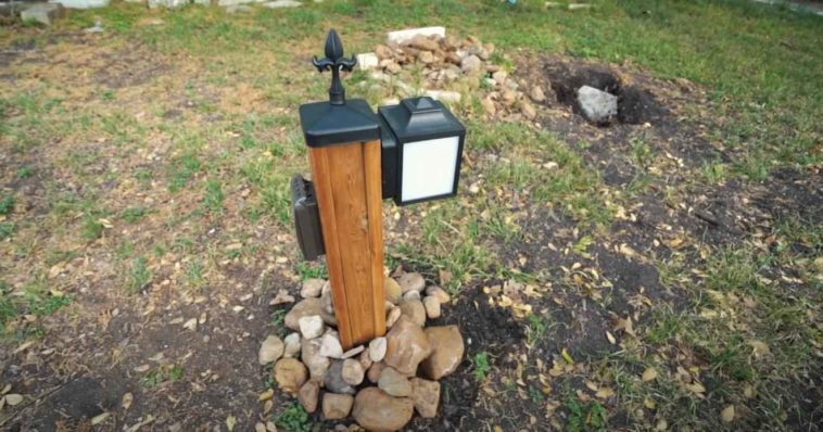 В данном обзоре расскажем, как сделать декоративный фонарь на участке. Дополнительно встроим в него еще и розетку.