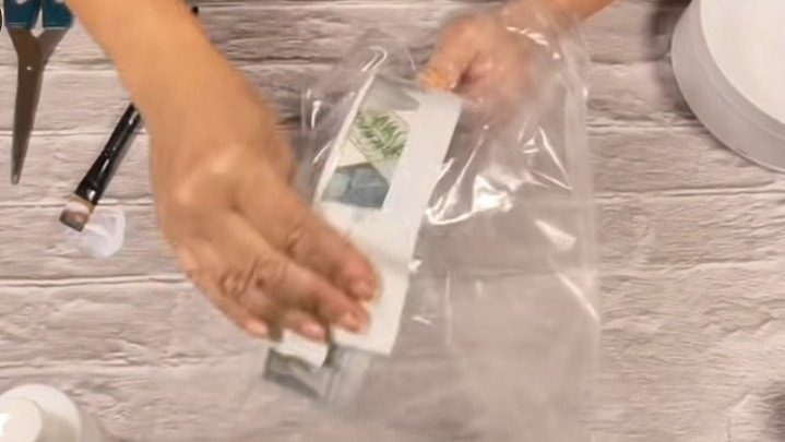Чтобы разгладить салфетку, не повредив, накройте её сверху слоем целлофана, и поверх прогладьте тряпочкой. После этого мягкой плоской кистью нанесите ещё один слой клея ПВА (можно разбавить его водой 1:1). После того, как декупаж высохнет, поверхность нужно покрыть слоем матового или глянцевого водоэмульсионного (акрилового) лака.