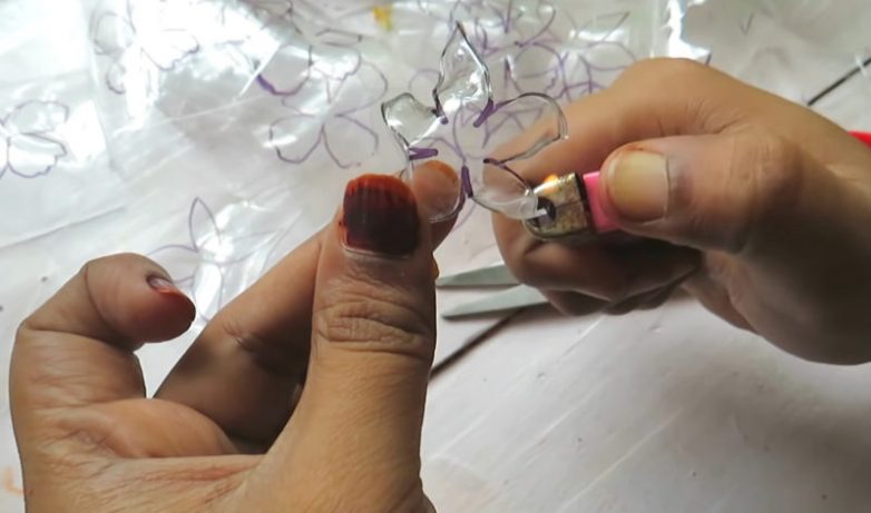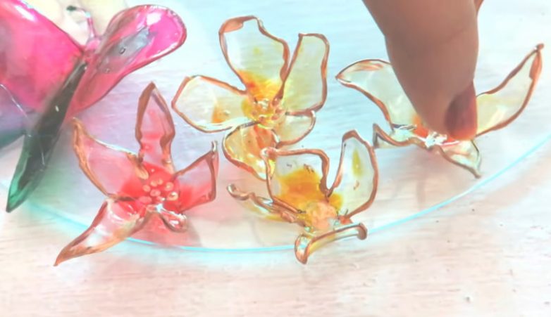 Подогрейте лепестки цветов и крылышки бабочек с помощью зажигалки, чтобы получить красивый изгиб.
