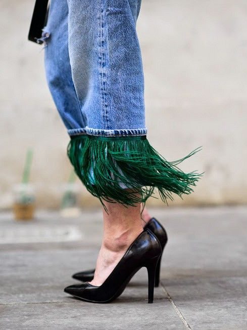 Бахрома — отличный тренд этого лета, вы можете добавить их к своим любимым джинсам внизу, чтобы модернизировать их. Найдите полоску бахромы и пришейте ее к краю подола. Можно сочетать самые необычные цвета